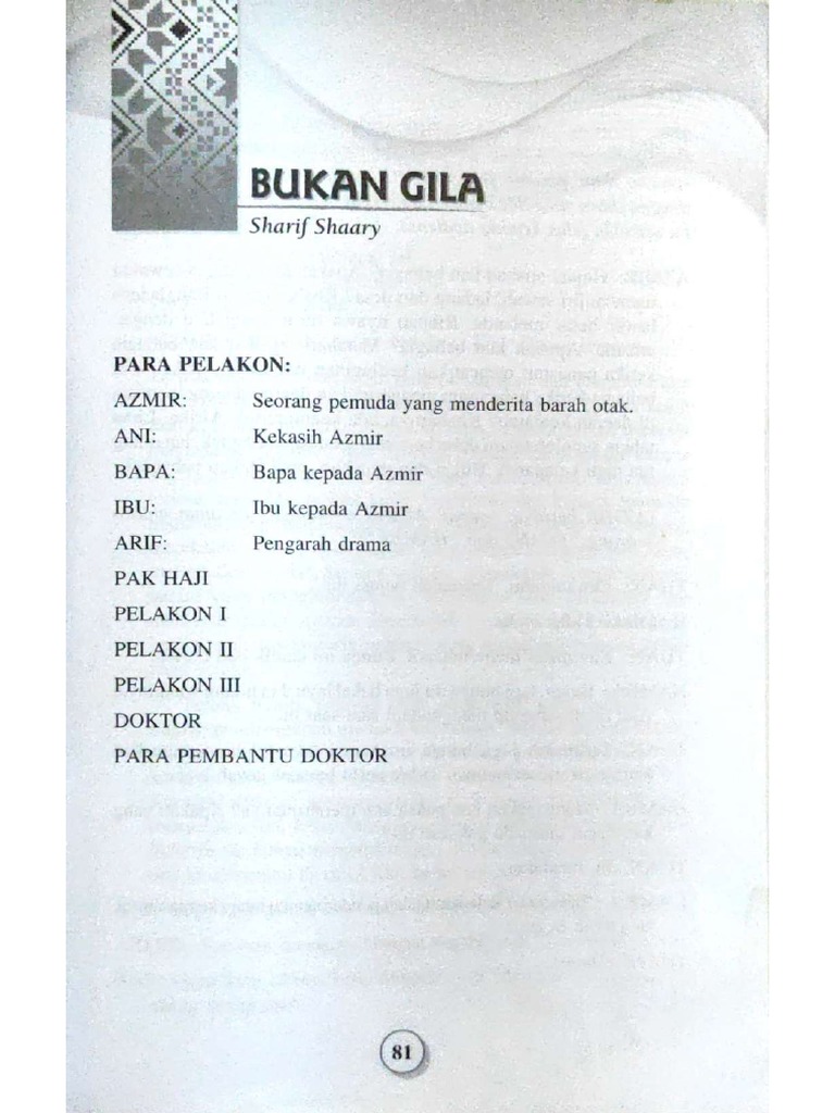 Nota Komsas Analisis Drama Bukan Gila Antologi Sejadah Rindu